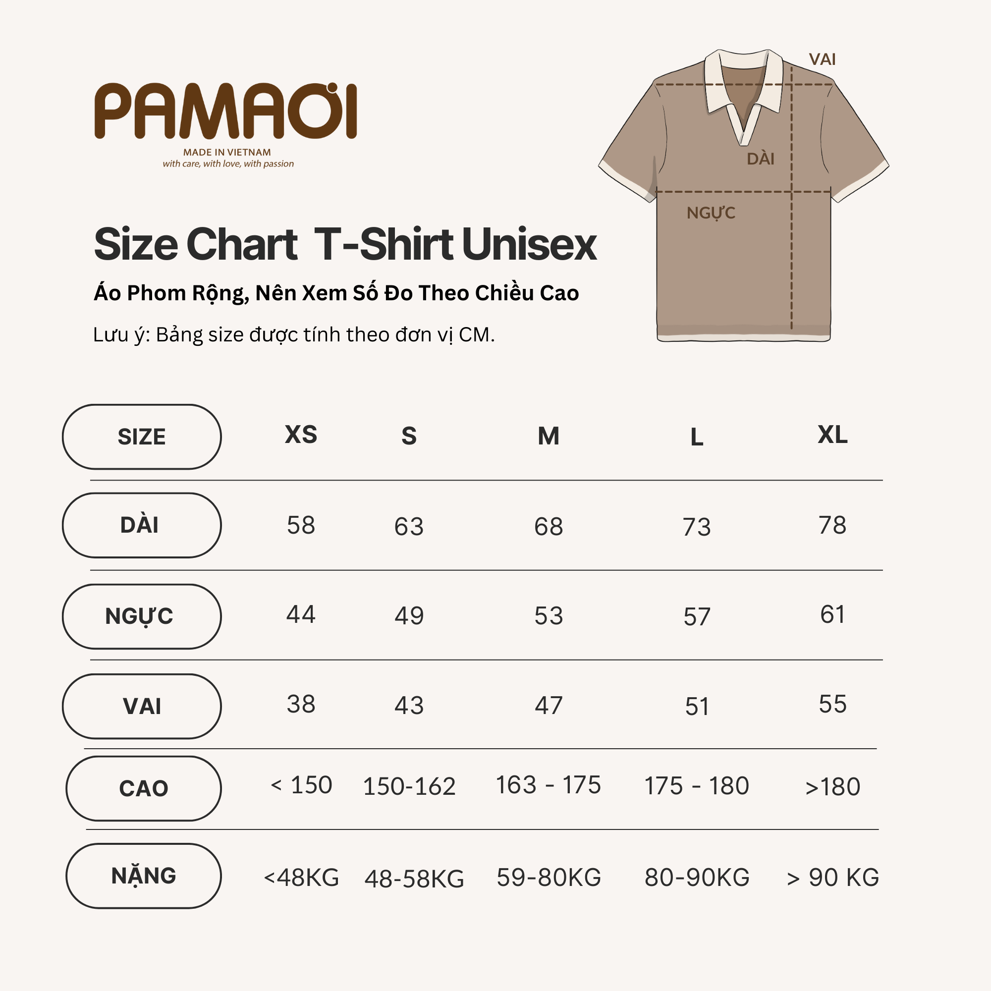 - Sản phẩm được may theo thông số tiêu chuẩn tướng đối của người Việt Nam.